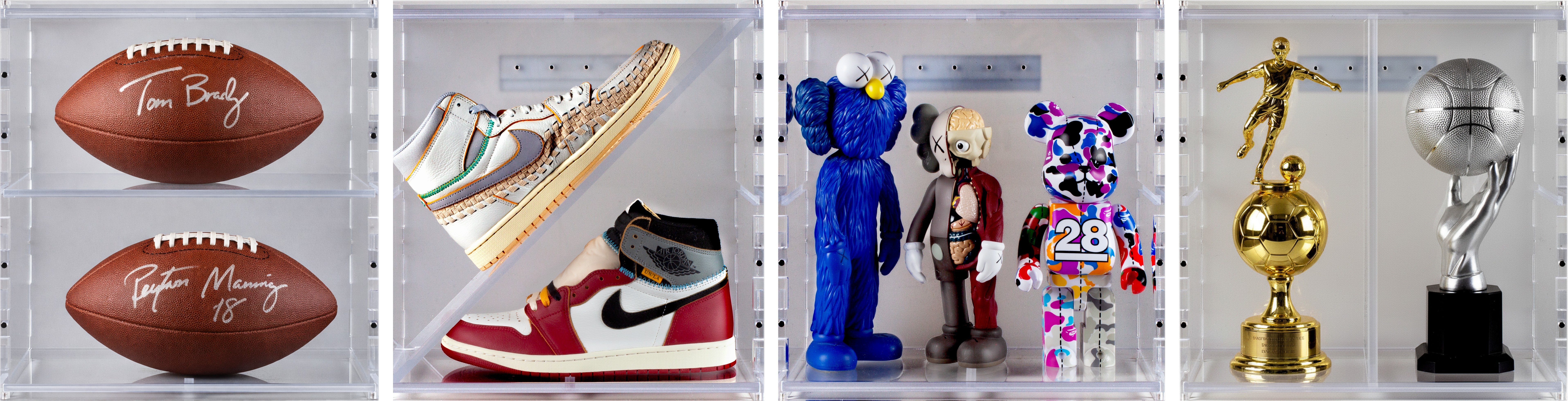 Boxjoint transforms sneakers, trading cards, signed memorabilia, and luxury collectibles into architectural statement pieces. Our patent-pending magnetic front panel and precision box-joint structure deliver museum-grade clarity, UV protection, and effortless modular mounting—setting a new standard in collectible display.